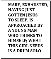 The little drummer boy was thinking about what might be needed, what might be helpful, what might be good at this time. But in this twist, what Mary needed was silence and a chance to rest and even to take a little nap.